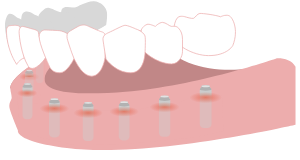 多くの歯を失った方に対して、4本または6本のインプラントで全体の歯を支える治療法です。当院では対応可能な治療の一つです。